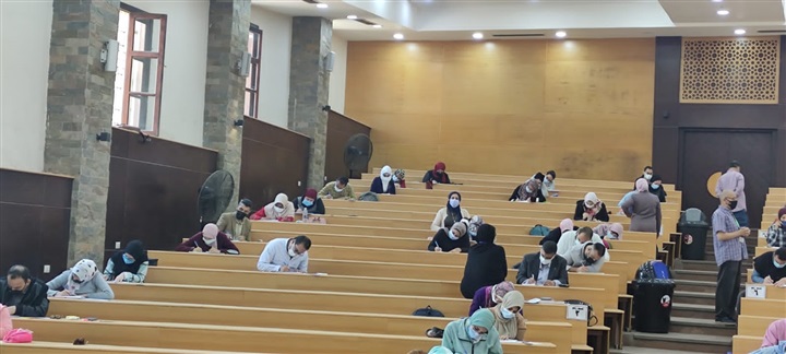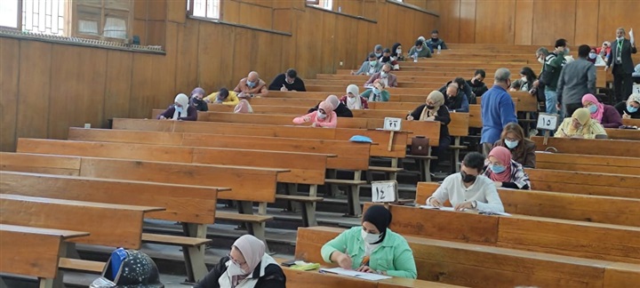 لجنة الامتحان، وتوزيع دخول الطلاب للجان الامتحانات مع التعقيم المستمر للجان الامتحانات