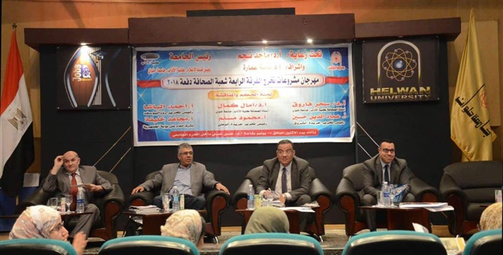عميد كلية الآداب بجامعة حلوان والدكتوره نائلة عمارة رئيس قسم الاعلام، الدكتوره سحر