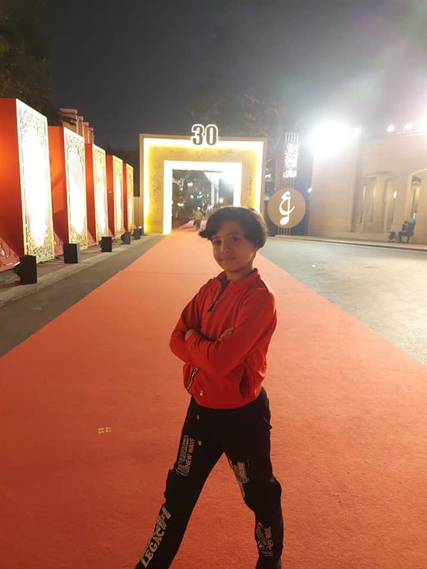 الأوبرا المصرية ويبلغ من العمر 12 عامًا، ويعيش مع أسرته في منزل بمنطقة طريق الداخلة