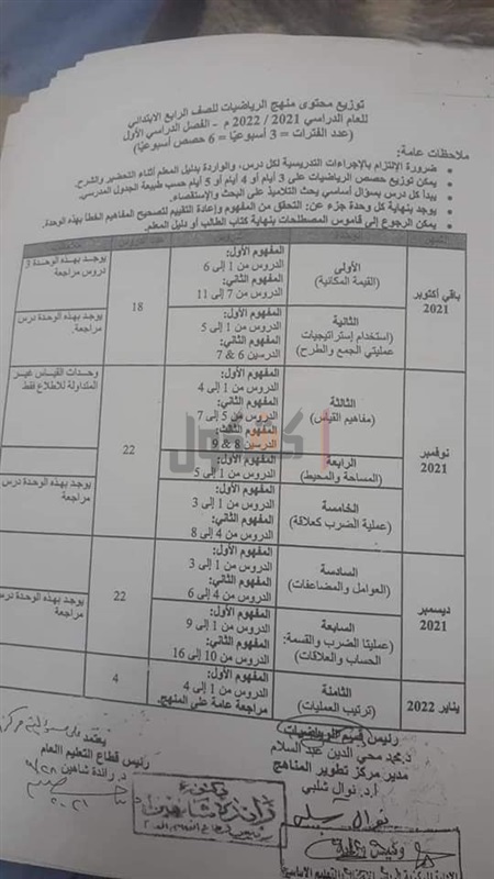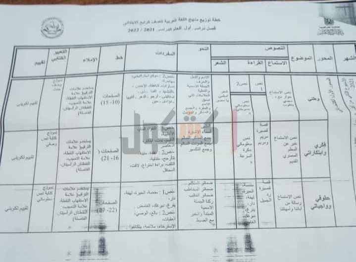 المناهج التي سيؤدي طلاب الصف الرابع الابتدائي الامتحان فيها بداية من يوم 5