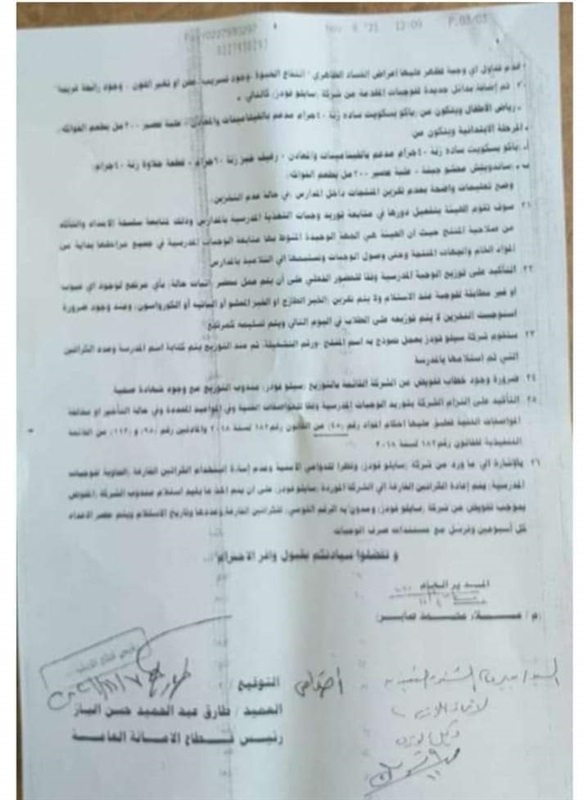 أصدرت وزارة التربية والتعليم والتعليم الفني، خطابا هاما، لمديريات التربية والتعليم، بشأن التعليماث الواجب مراعاتها عند تقديم التغذية المدرسية للطلاب المستهدفين للعام الدراسي ۲۰۲۲/۲۰۲۱.