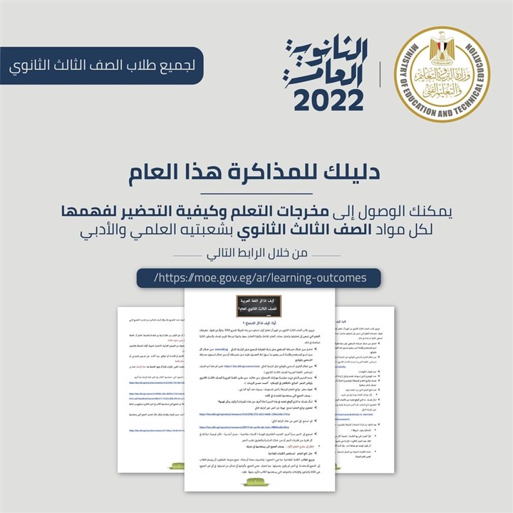 واكدت وزارة التربية والتعليم، انه يمكنك الوصول إلى مخرجات التعلم وكيفية التحضير لفهمها لكل مواد الصف الثالث الثانوي بشعبتيه العلمي والأدبي.