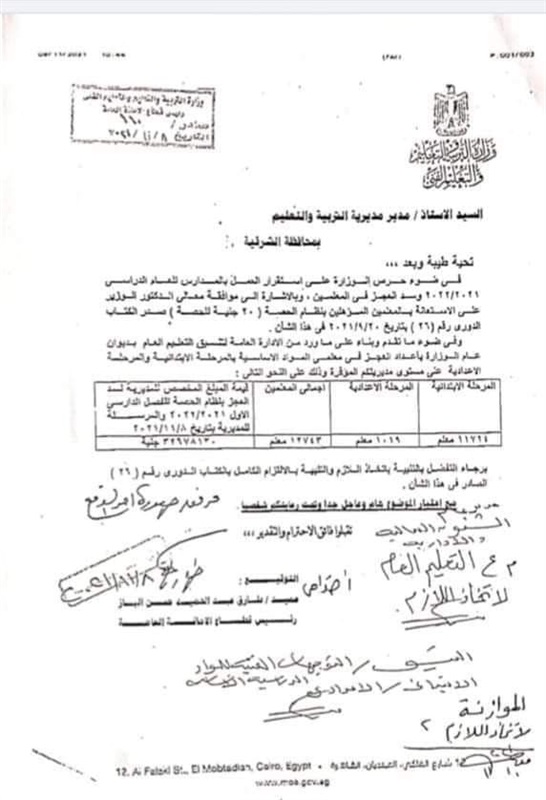 وزير التربية والتعليم، وصدر الكتاب الدوري رقم(26) بتاريخ 20 /9/2021 فى هذا