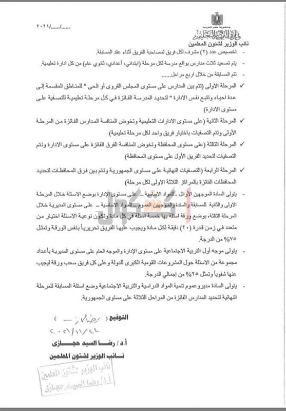 ومن جهته، وافق الدكتور طارق شوقي وزير التربية والتعليم، على الإعلان بالمديرية والإدارات التعليمية لكل من تطبق عليه الشروط ويرغب في التقدم وصل مقابلات الاختيار وترشيح عدد أربعة (1) فقط لكل وظيفة (رئيس - وكيل) وإرسالها إلى الإدارة المركزية للتعليم الفني مرفق بها جميع المستندات المطلوبة لكل وظيفة.