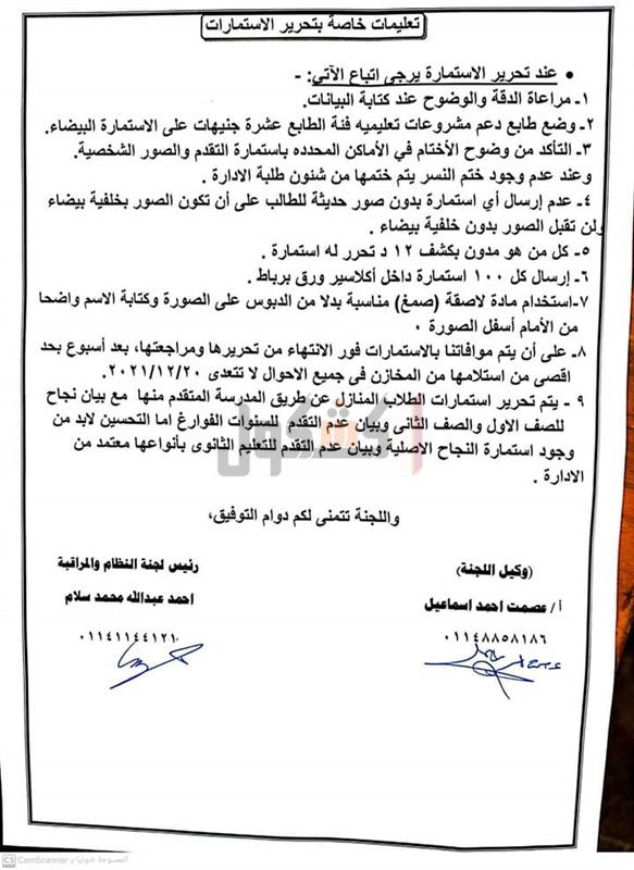 _ سرعة الانتهاء من طباعة 12 د الإلكتروني وفقا لإستمارة بيانات الطالب من موقع الوزارة وإرسالها إلى لجنة النظام والمراقبة داخل دوسيه بلاستيك بكبسونة