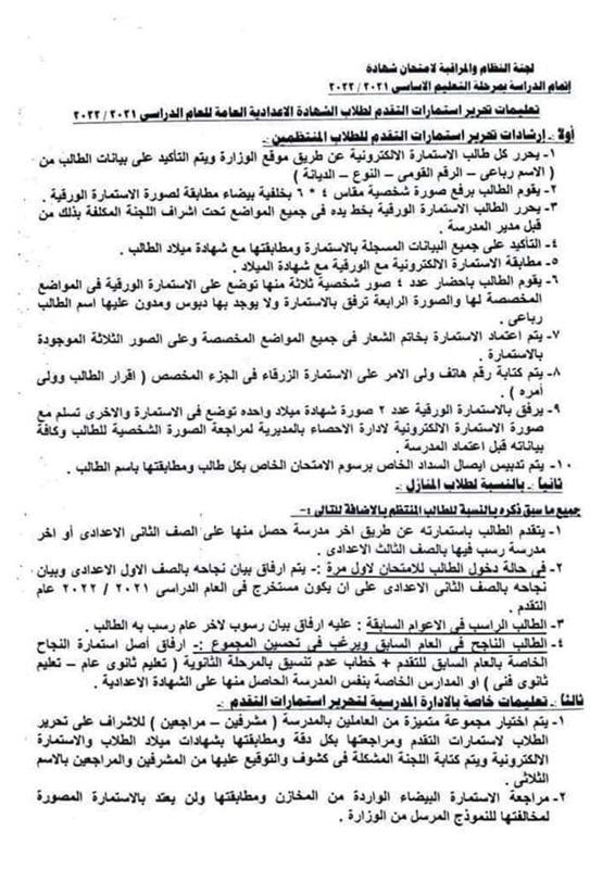 - يتم إرفاق بيان نجاحه بالصف الأول الإعدادي وبيان - نجاحه بالصف الثاني الإعدادي