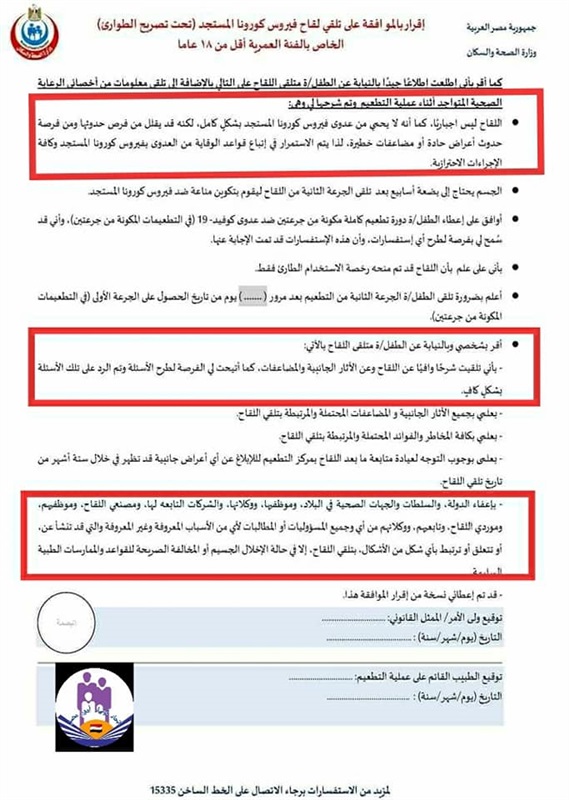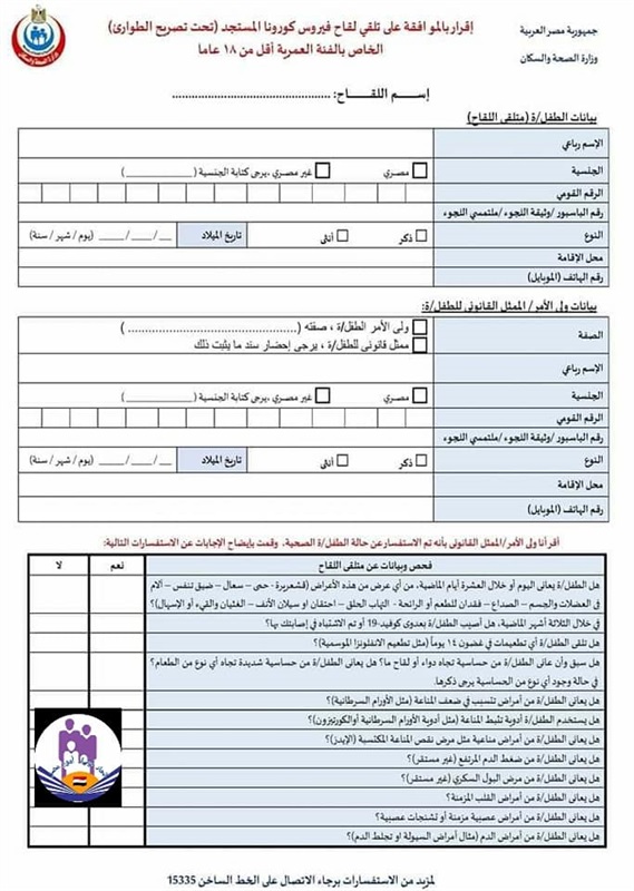 الطالب على اقرار بالموافقة على اعطاء نجلة اللقاح وجاء ابرز بنود الأقرار