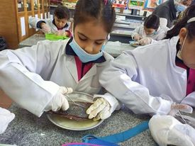 نشرت صفحة إحدى المدارس الخاصة، صور لحصة تشريح السمكة لطلاب الصف الرابع الابتدائي، بمنهج العلوم للعام الدراسي ٢٠٢١_ ٢٠٢٢.