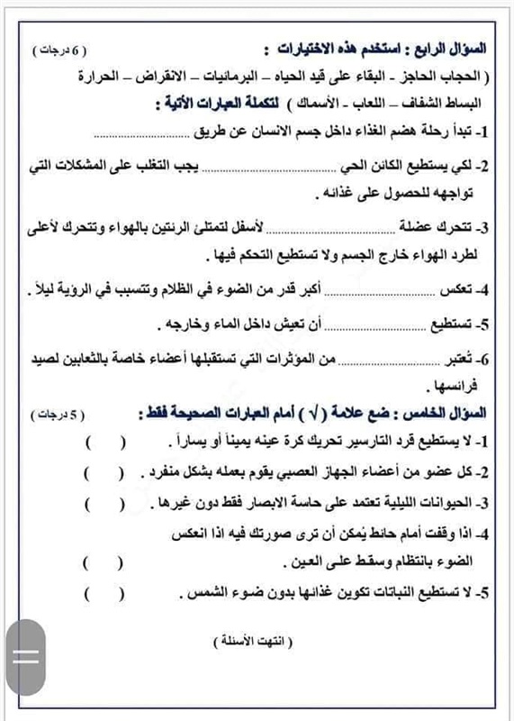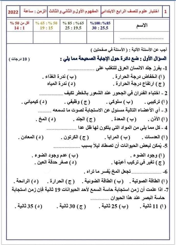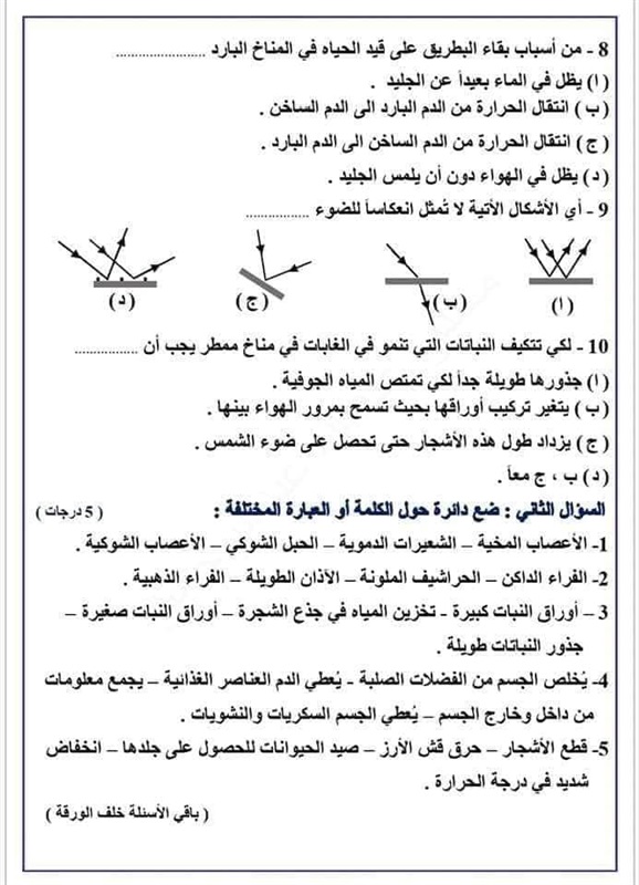 نماذج امتحانات الصف الرابع الابتدائي 2021