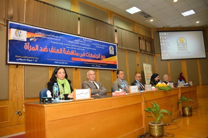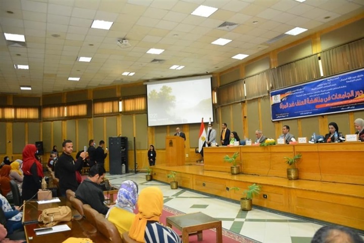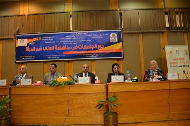 جاء ذلك خلال افتتاحه لندوة حول "دور الجامعات في مناهضة العنف ضد المرأة" والتى نظمها المجلس القومي للمرأة بالتعاون مع اتحاد طلاب الجامعة وأسرة طلاب من أجل مصر، والتى شهدت حضور الدكتور شحاتة غريب نائب رئيس الجامعة لشئون التعليم والطلاب، والدكتورة مها كامل غانم نائب رئيس الجامعة للشئون خدمة المجتمع وتنمية البيئة، والدكتورة مروة كدواني مقرر المجلس القومي للمرأة بأسيوط، والدكتور حسن سند عميد كلية الحقوق جامعة المنيا وعضو اللجنة التشريعية بالمجلس القومى للمرأة، والدكتورة شيماء نعيم مدير عام للإدارة الاستراتيجية بالمجلس القومي للمرأة، والطالب عبدالرحمن رشاد رئيس اتحاد الطلاب، والطالبة زينب أشرف نائب رئيس اتحاد طلاب الجامعة، ولفيف من الأساتذة وأعضاء هيئة التدريس بالكليات المختلفة بالجامعة، وكوكبة من أعضاء المجلس القومي للمرأة، وحشد من طلاب وطالبات الجامعة.