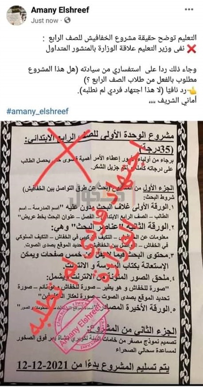 حقيقة تكليف طلاب رابعة ابتدائي بمشروع بحثي عن الخفافيش
