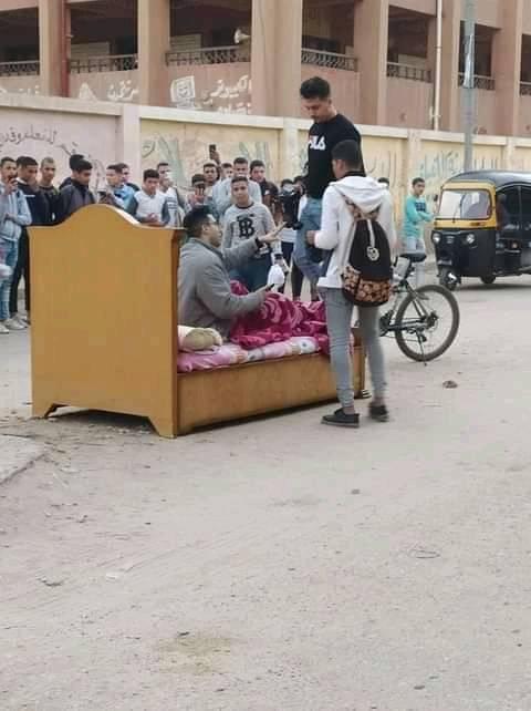 كانت الأجهزة الأمنية رصدت، تداول منشور على إحدى الصفحات على موقع التواصل الإجتماعى "فيس بوك" مصحوب ببعض الصور لشخصين أحدهما جالس والآخر واقفا على سرير بأحد الشوارع أمام إحدى المدارس بالسنبلاوين بالدقهلية، وتجمع بعض الأشخاص حولهما.