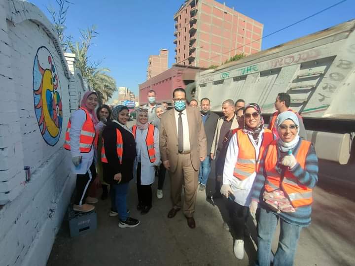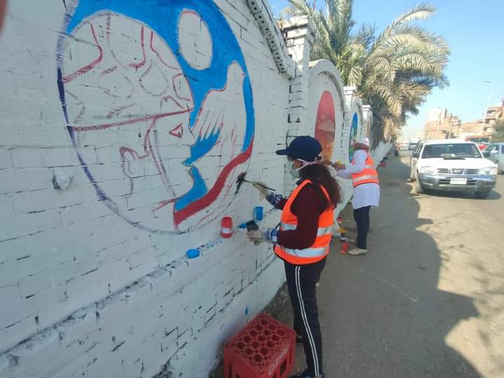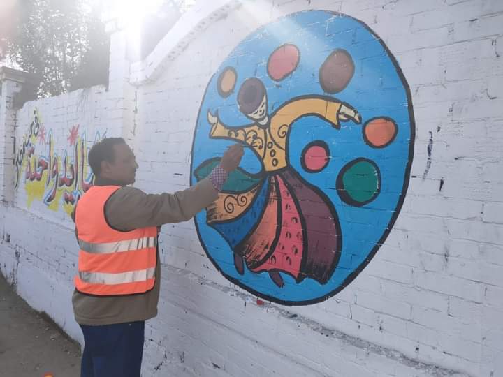 قام المعلمون بالرسم على الجداريات لأكثر من ٢ كيلو متر، على اسوار المدخل الجنوبي لمدينة طنطا.