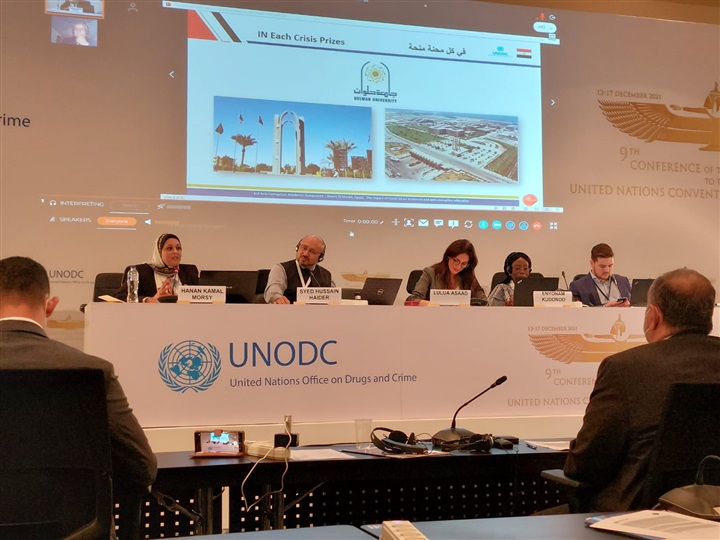 شارك أساتذة جامعة حلوان في الجلسات التحضيرية في المؤتمر التاسع للدول الأطراف لاتفاقية الأمم المتحدة لمكافحة الفساد، وذلك من خلال حضور قوي وتمثيل فعال لجامعة حلوان بقيادة الدكتور ممدوح مهدي القائم بعمل رئيس الجامعة، والدكتورة حنان كمال بكلية التربية ومقرر لجنة مكافحة الفساد بالجامعة ومنسق الجامعة لدي هيئة الرقابة الإدارية، والدكتورة لبنى شهاب بكلية التربية ونائب مدير مكتب العلاقات الدولية، والدكتورة أمل أبو طبل الأستاذ بكلية الحاسبات والذكاء الاصطناعي ووكيل الكلية.