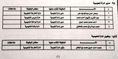 شملت الوظائف المعلنة مدير إدارة تعليمية ووكيل إدارة