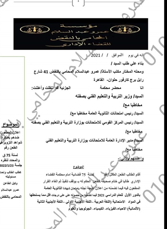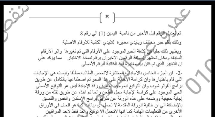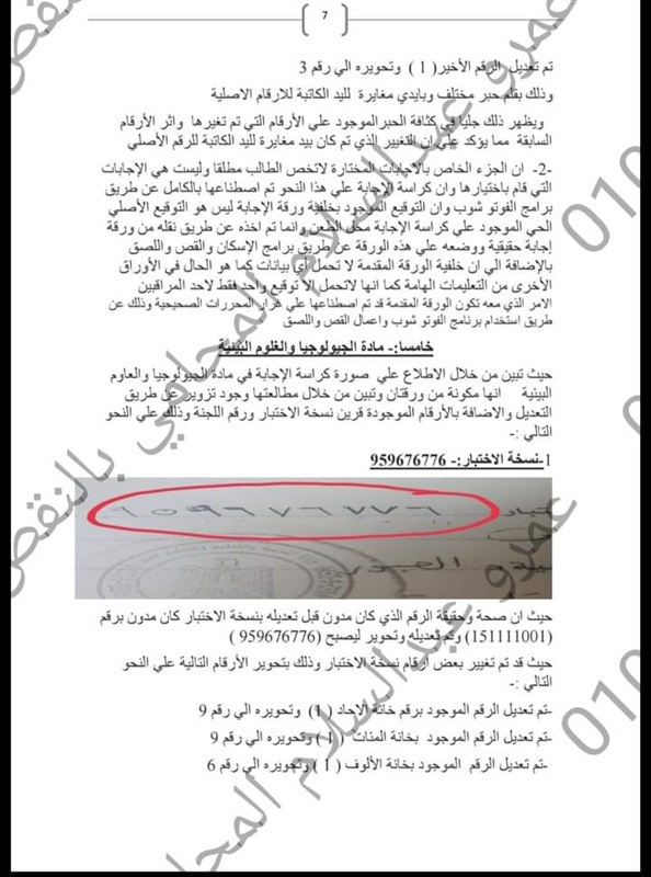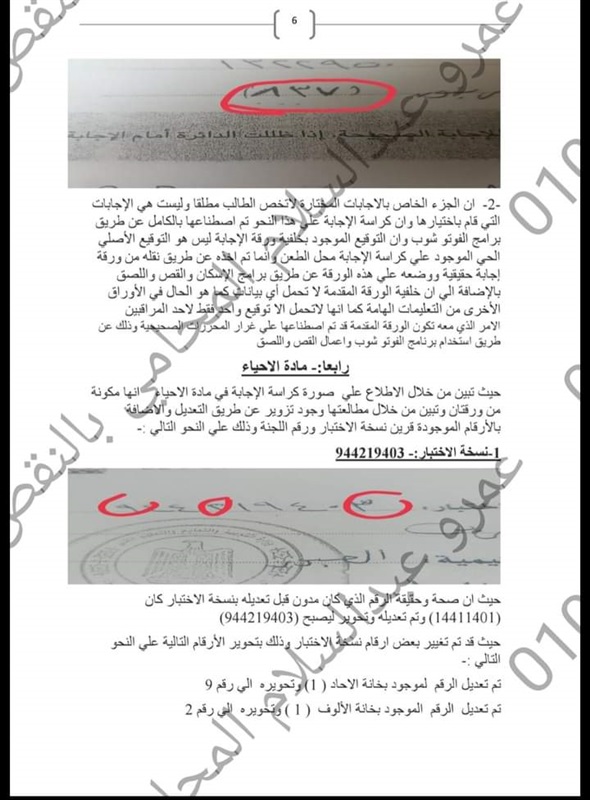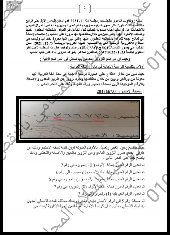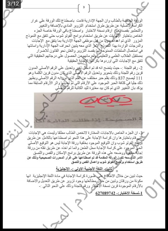 نشر عمرو عبدالسلام، المحامي بالنقض، مذكرة شرح و توضيح للتلاعب الذي تم في صور أوراق الإجابة للمواد الامتحانية المطعون عليها لطلاب الثانوية العامة.