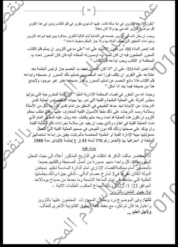 وقال في منشور عبر صفحته بموقع التواصل الاجتماعي فيس بوك، إن ما حدث في حق أبناءنا جريمة جنائية مكتملة الأركان تمس نزاهة احدي سلطات الدولة مما يستوجب علي القيادة السياسية والأجهزة الرقابية وسلطات التحقيق أن تتدخل لمحاسبة المزورين وتقديمهم للمحاكمة الجنائية أيا كانت مناصبهم .