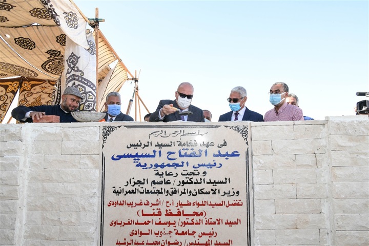 محافظ قنا يضع حجر الأساس لمشروع إسكان العاملين بجامعة جنوب الوادي