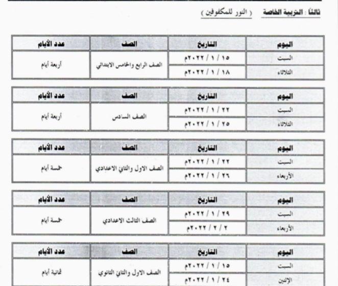 الشيخ، جدول امتحانات الفصل الدراسي الاول للعام الدراسي 2022/2021م، لصفوف المرحلة