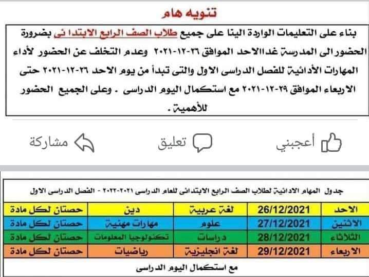تبدأ غدا.. مواعيد اختبارات المهام الأدائية لرابعة ابتدائي