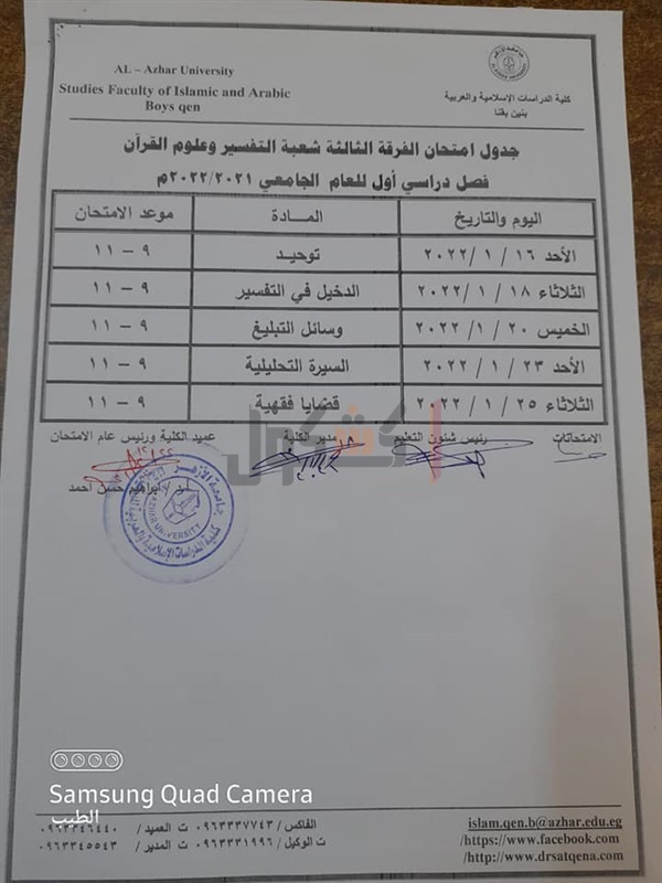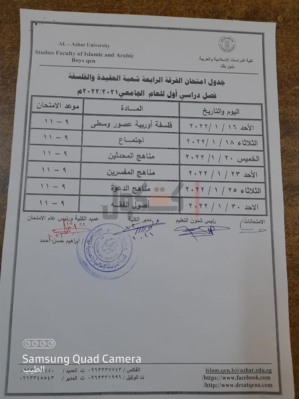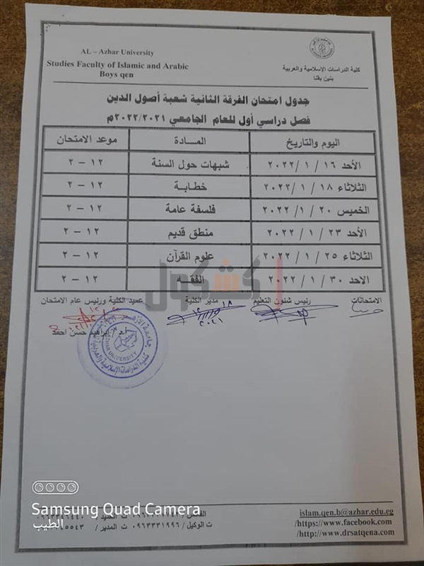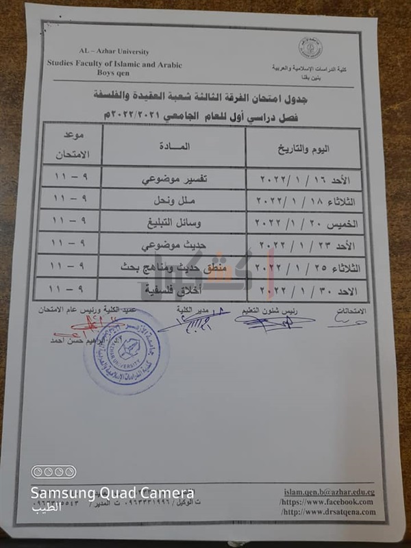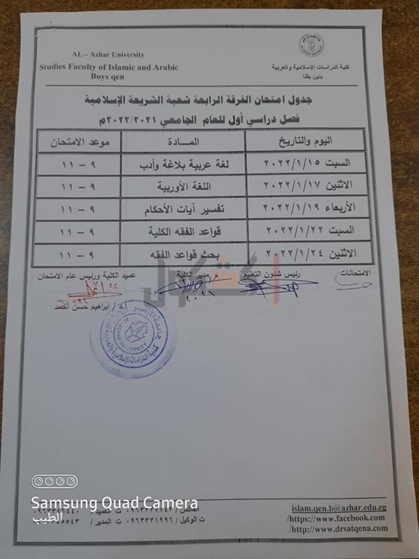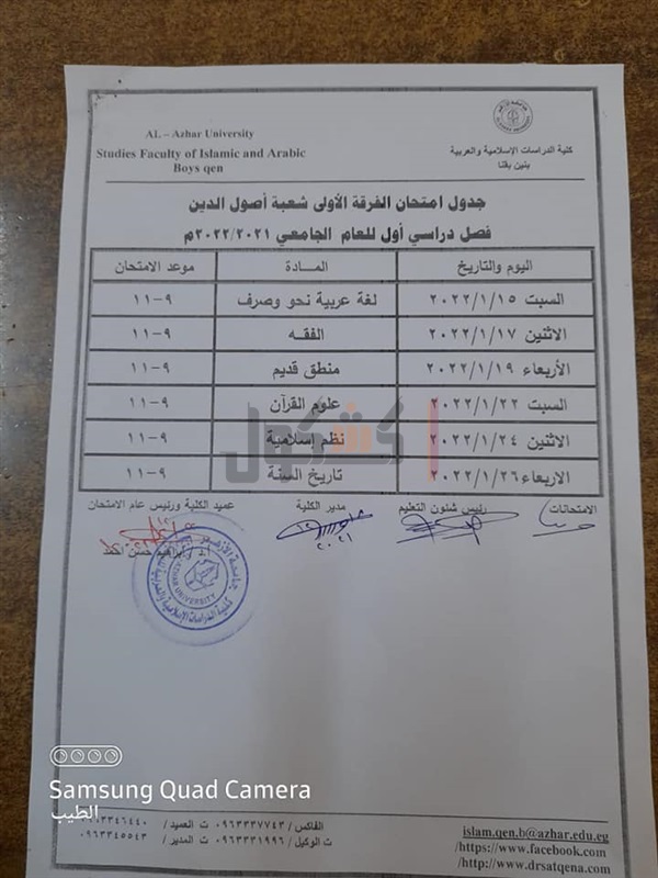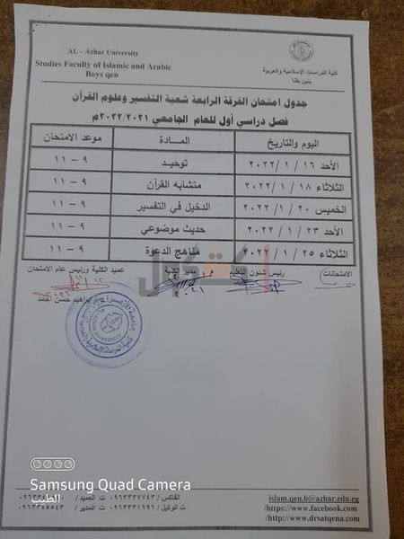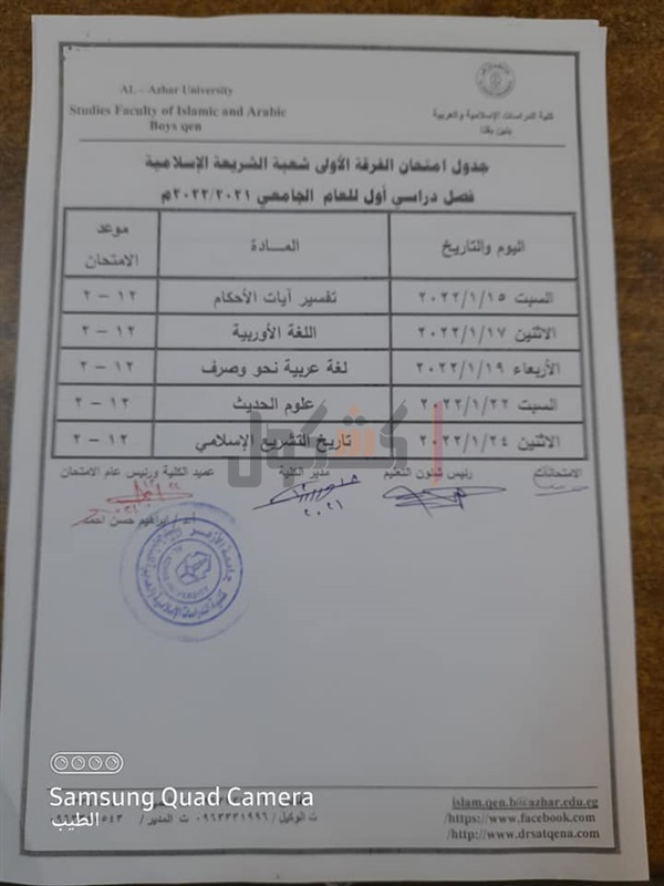جدوال امتحانات الدراسات الإسلامية بقنا الفصل الدراسي الأول