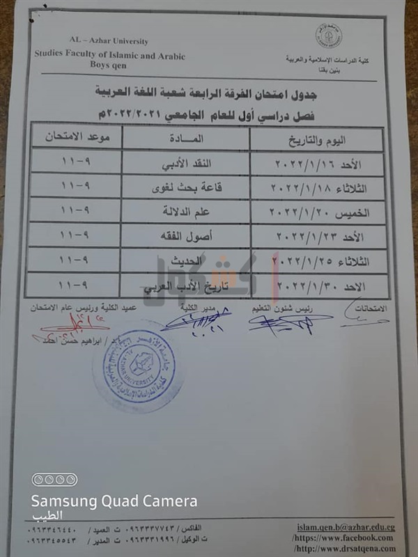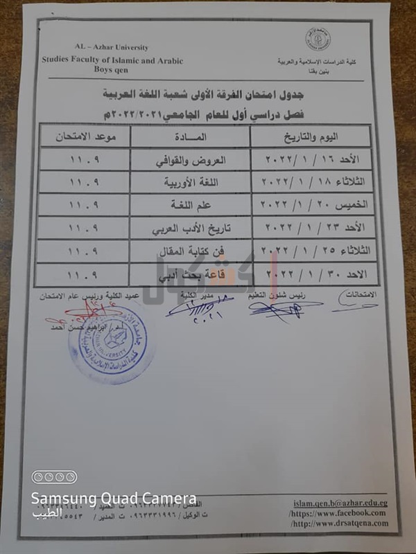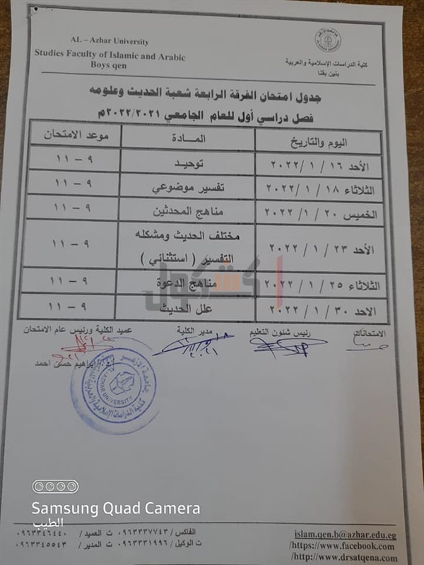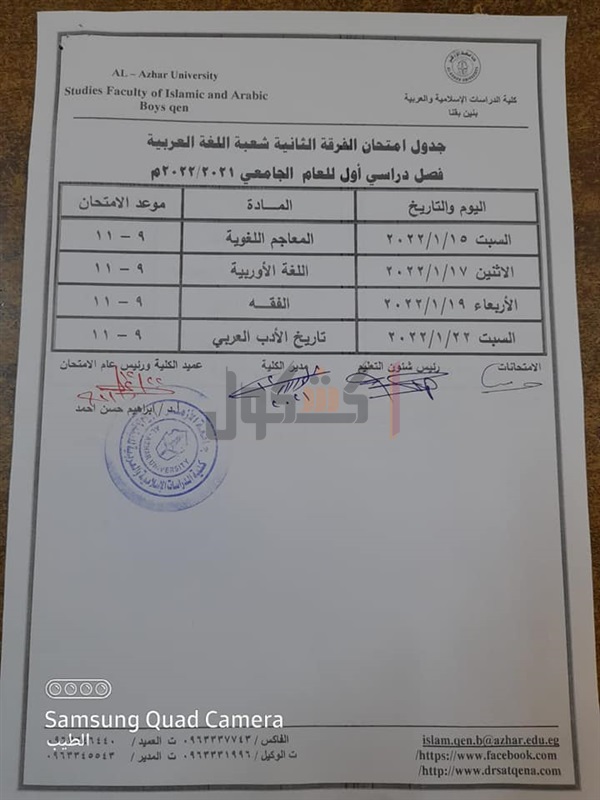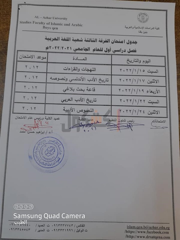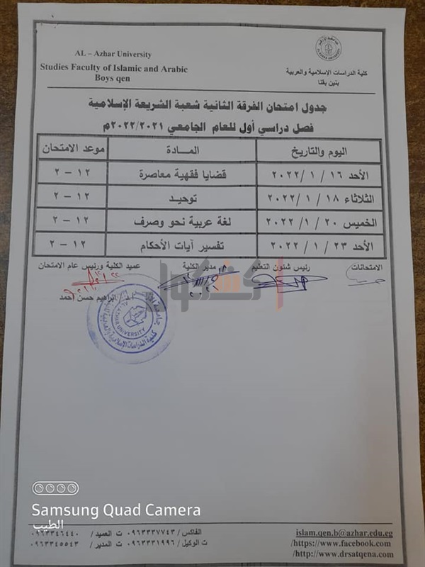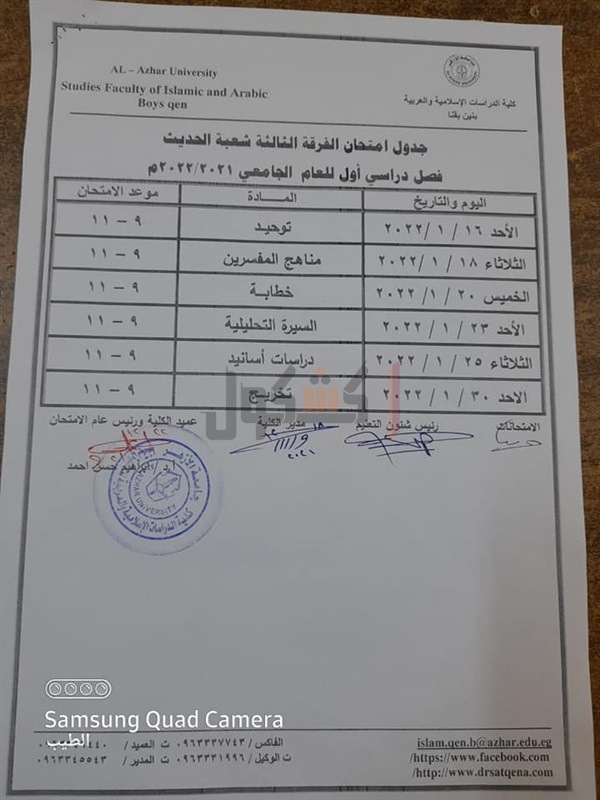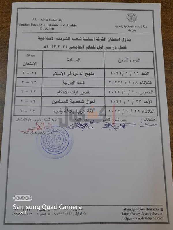 جدوال امتحانات الدراسات الإسلامية بقنا الفصل الدراسي الأول