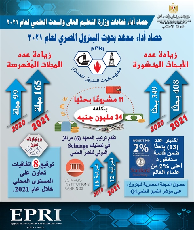 دوليًا من جانب معهد بحوث البترول، وزيادة عدد مشروعات المعهد، وزيادة عدد علماء المعهد