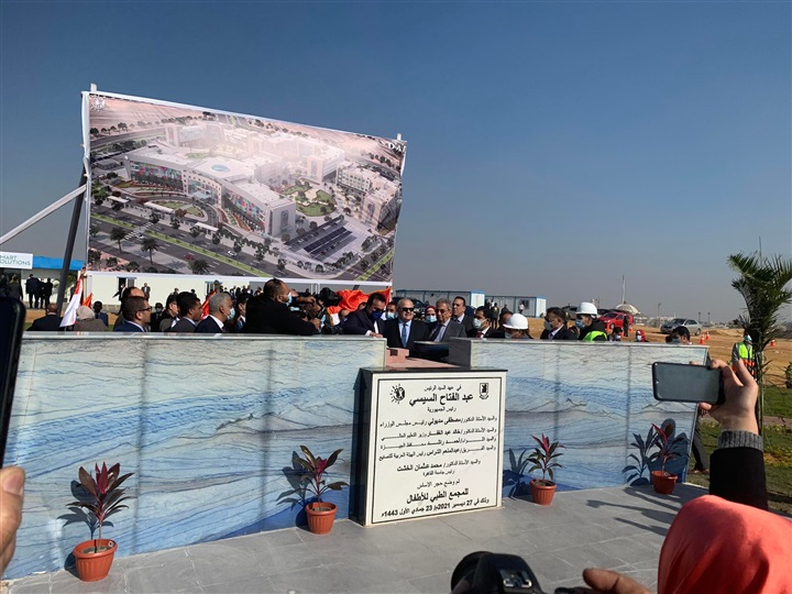 شهد الدكتور خالد عبدالغفار وزير التعليم العالي والبحث العلمي، واللواء أحمد راشد محافظ الجيزة، والفريق عبد المنعم التراس رئيس الهيئة العربية للتصنيع، والدكتور محمد عثمان الخشت رئيس جامعة القاهرة، حجر أساس أكبر مجمع طبي للأطفال في الشرق الأوسط بجامعة القاهرة الدولية بمدينة 6 أكتوبر.