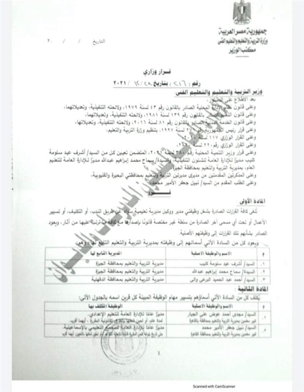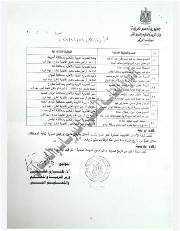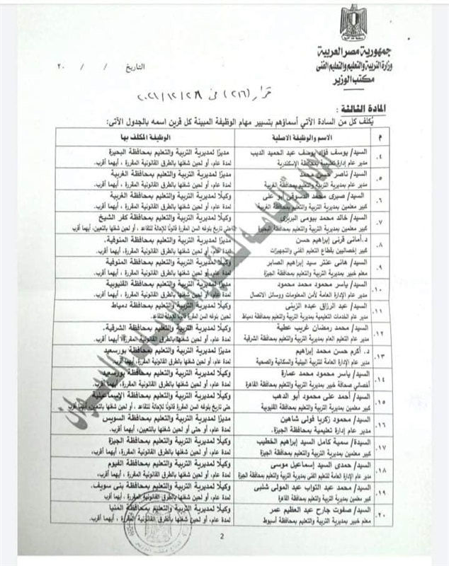 ننشر حركات التغييرات الجديدة بمديريات التربية والتعليم.. مستند