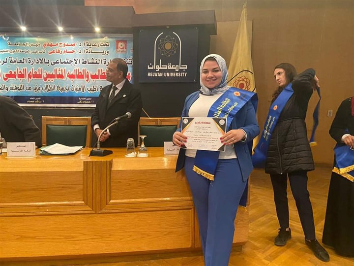 نظمت إدارة النشاط النشاط الاجتماعي بالإدارة العامة لرعاية الشباب جامعة حلوان مسابقة الطالب والطالبة المثالية، تحت رعاية الدكتور ممدوح مهدي القائم بعمل رئيس الجامعة، وريادة الدكتور حسام رفاعي نائب رئيس الجامعة لشئون التعليم والطلاب، وإشراف عام هشام رفعت أمين الجامعة لشئون التعليم والطلاب، وراشد محمد عصام مدير عام الإدارة العامة لرعاية الشباب، وعصام زكي مدير الإدارة.