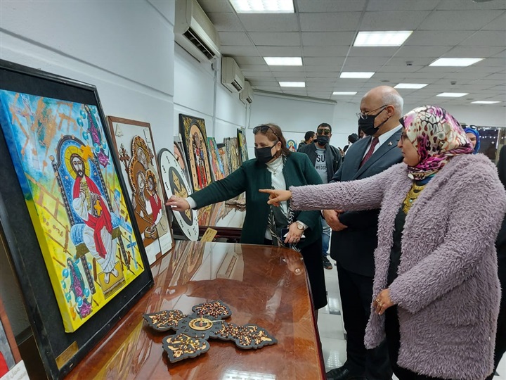 وقال الدكتور جمال سوسه، إن المعرض يأتي في إطار احتفالات الأخوة المسيحيين بأعياد الميلاد المجيد حيث يضم مجموعة متنوعة من اللوحات الفنية لبعض الأعمال القبطية، مشيرا إلى أن الجامعة حريصة على تنمية مهارات الطلاب وتبنى ما يقدمونه من إبداع وأعمال فنية متنوعة.