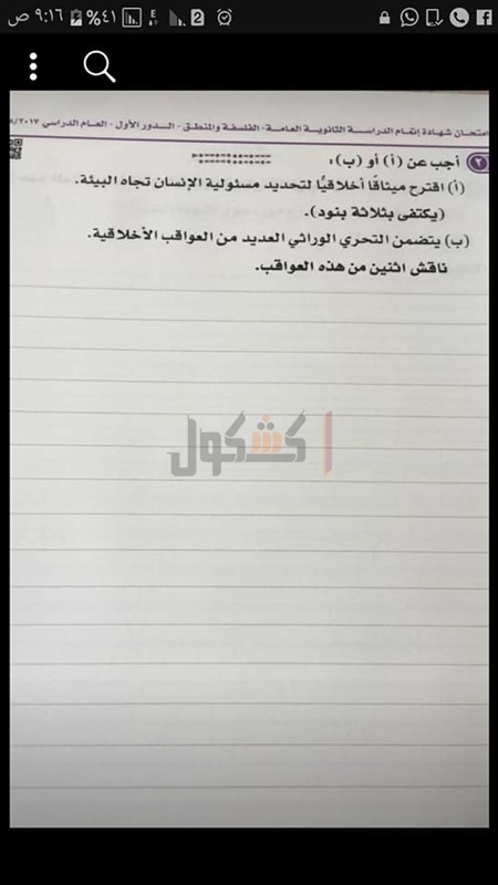 حيث تم نشر صور لبعض اسئلة الامتحان الذى يؤديه طلاب الثانوية العامة الشعبة الادبية في آخر يوم من ماراثون الثانوية العامة.