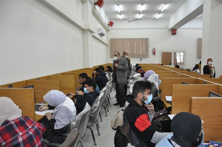 للطلاب خلال أداء الامتحانات في ظل الإجراءات الاحترازية التي تتخذها الجامعة من أجل