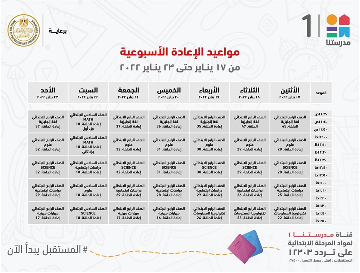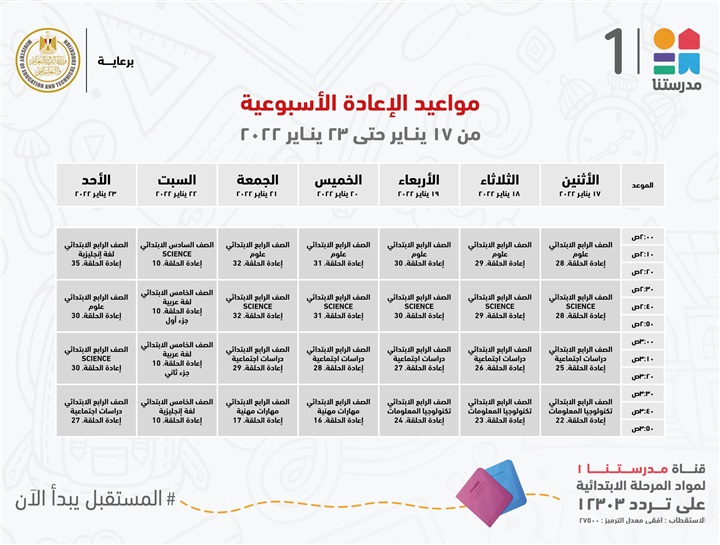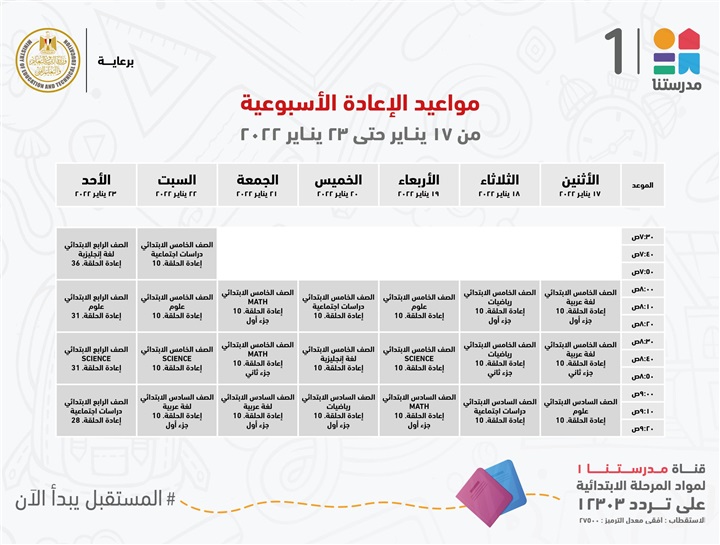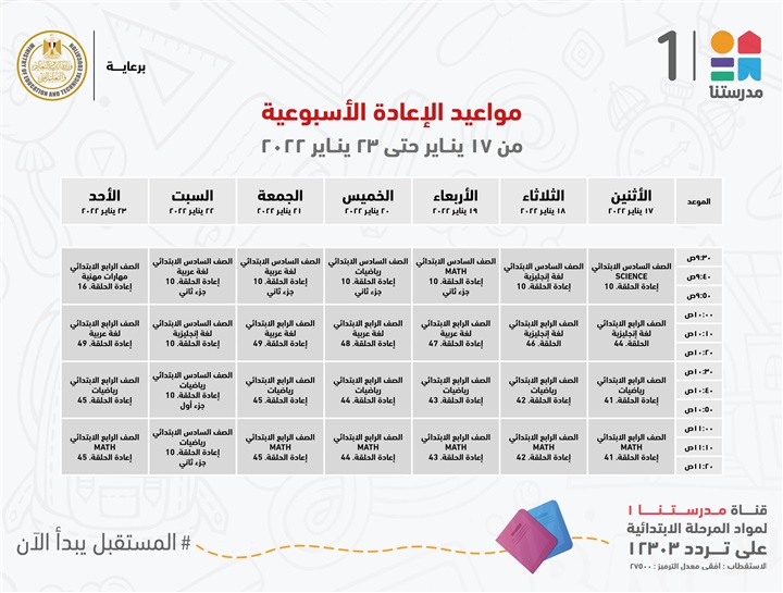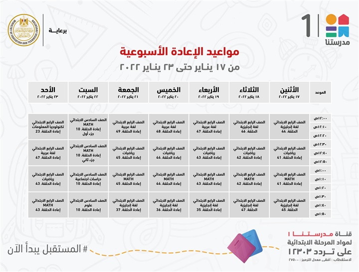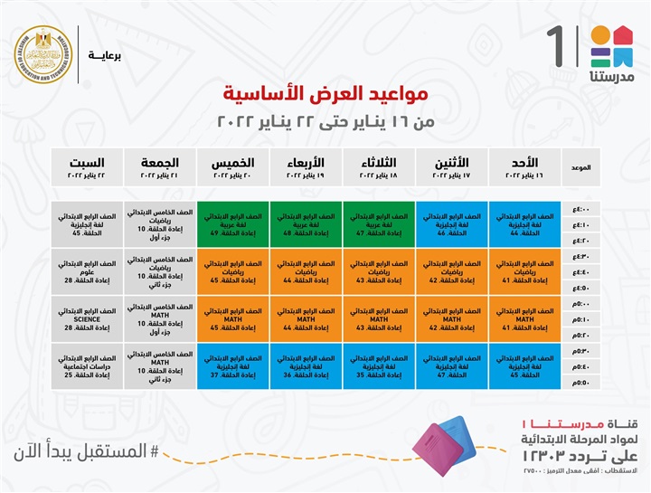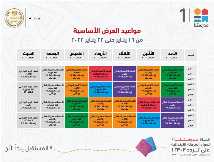 مدرستنا 1 تعلن مواعيد عرض البرامج التعليمية للصفوف الابتدائية