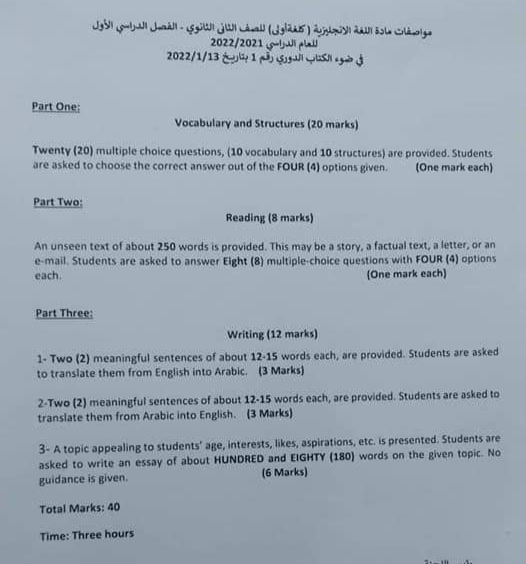 التعليم تعلن مواصفات امتحان الإنجليزى للصفين الأول والثانى الثانوى.. صور