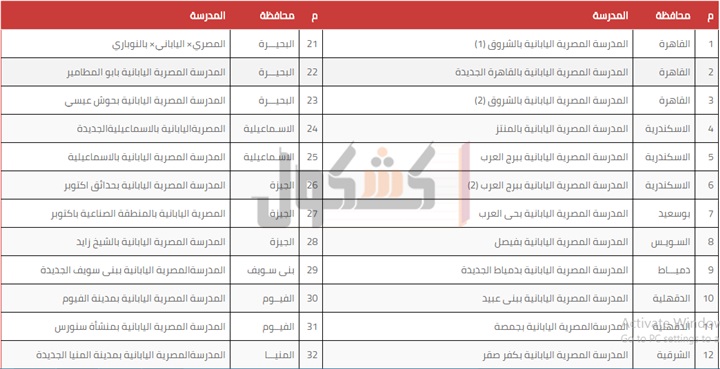 ننشر أماكن المدارس اليابانية علي مستوى الجمهورية