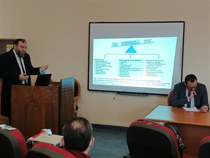 ومن جانبه أفاد الدكتور محمد القصاص رئيس قسم الأمراض المتوطنة، أنه خلال اللقاء تم مناقشة أسباب السمنة ومضاعفاتها على صحة الفرد والمجتمع والتحديات التي تقف أمام مواجهتها وكذلك كيفية علاجها سواء عن طريق الأنظمة الغذائية المختلفة أو باستخدام الادوية كما ناقش اللقاء احدث ماوصل اليه العلم فى علاج السمنة باستخدام المناظير الضوئية أو عن طريق العمليات الجراحية.