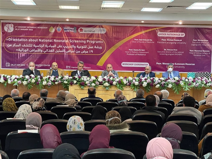 افتتح الدكتور عثمان شعلان رئيس جامعة الزقازيق ورشة العمل للتوعية والتدريب للكشف المبكر عن 19 مرضا من أمراض التمثيل الغذائي والأمراض الوراثية للأطفال، تنفيذا للمبادرة الرئاسية، واشتركت جامعة الزقازيق ممثلة في قسم الاطفال مع الإدارة العامة للحد من الإعاقة بوزارة الصحة لتفعيل تلك المبادرة وعمل ورشة العمل الأولى والتي يتبعها إجراءات أخرى للمضى قدما في هذا الشأن.