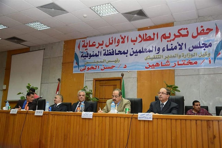 شهد صباح اليوم الدكتور عادل مبارك نائب رئيس جامعة المنوفية لشئون التعليم والطلاب، حفل تكريم الطلاب أوائل الشهادة الإعدادية بالإدارات التعليمية علي مستوي المحافظة الذي نظمه مجلس الأمناء والمعلمين بالمحافظة بقاعة الاحتفالات بالإدارة العامة للجامعة، وذلك بحضور الدكتور حسن الخولي رئيس المجلس واللواء علاء يوسف السكرتير العام المساعد للمحافظة ومختار شاهين وكيل وزارة التربية والتعليم والمدير التنفيذي والدكتور نصيف العفيفي وكيل وزارة الصحة بالمنوفية وحسن خضر وكيل وزارة المالية.