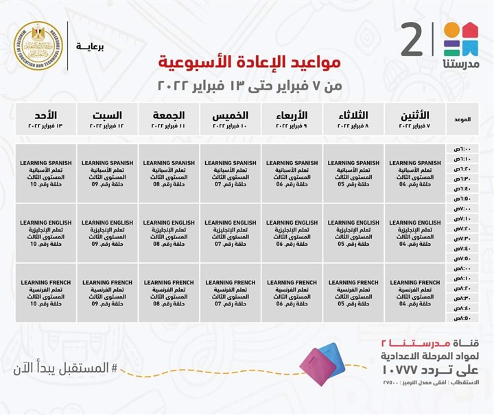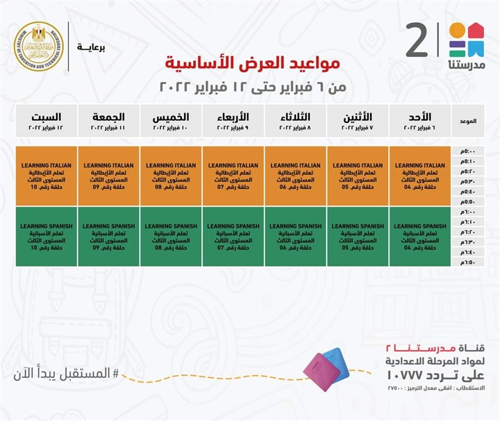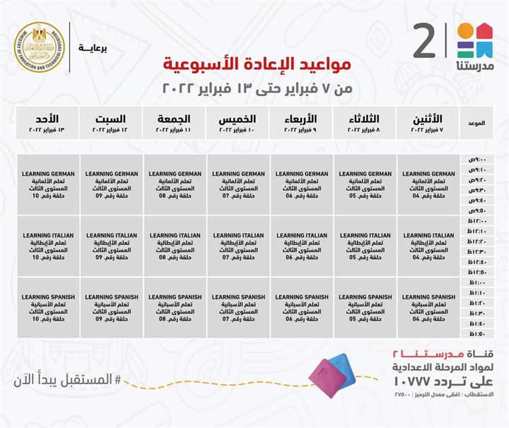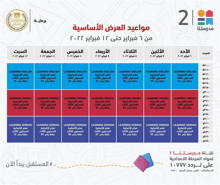 قناة مدرستنا 2 تعلن مواعيد عرض برامج تعلّم اللغات للطلاب
