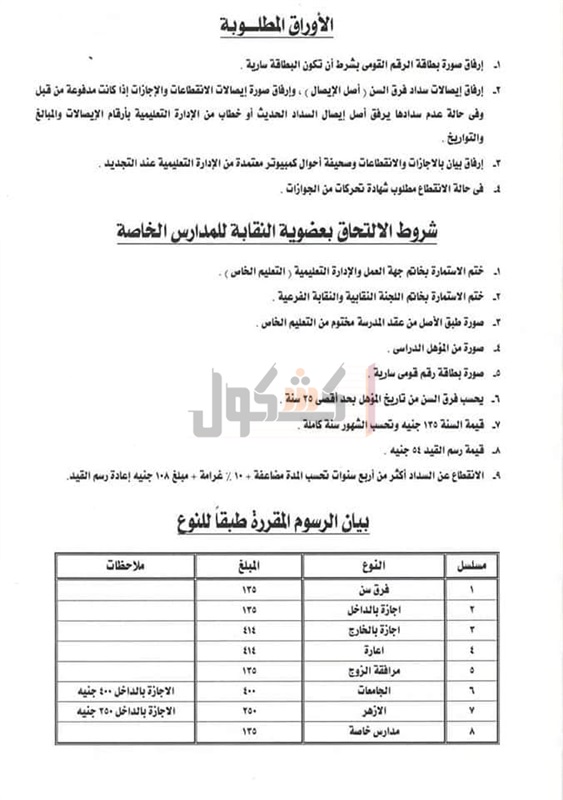 الشروط والأوراق المطلوبة لحصول معلمي المدارس على عضوية النقابة