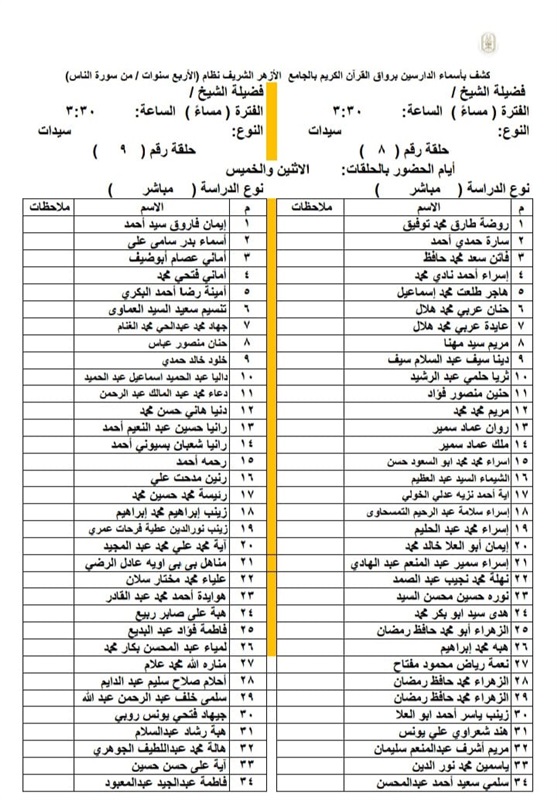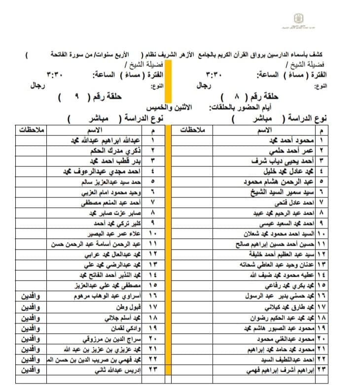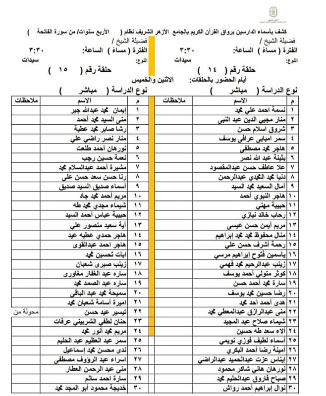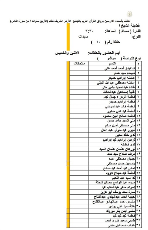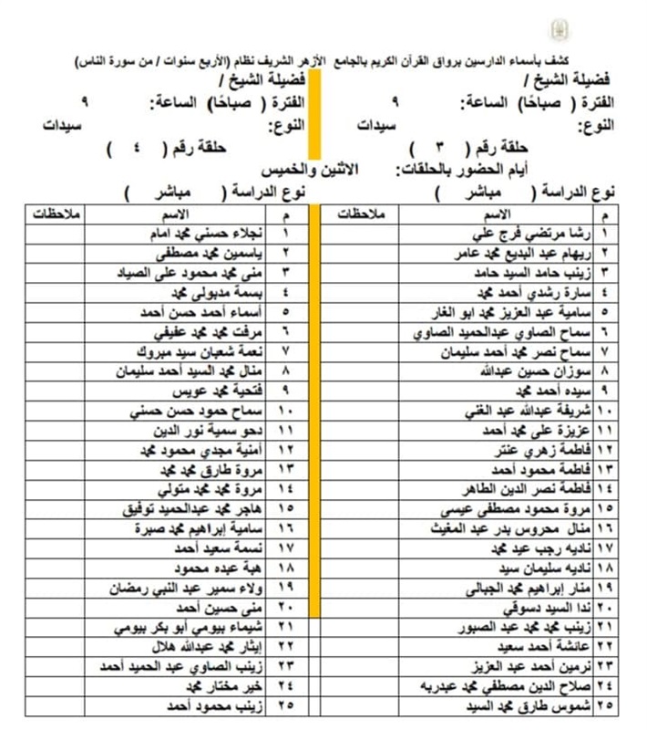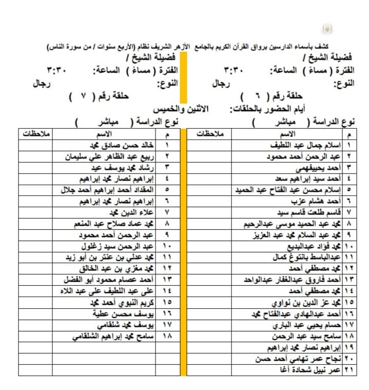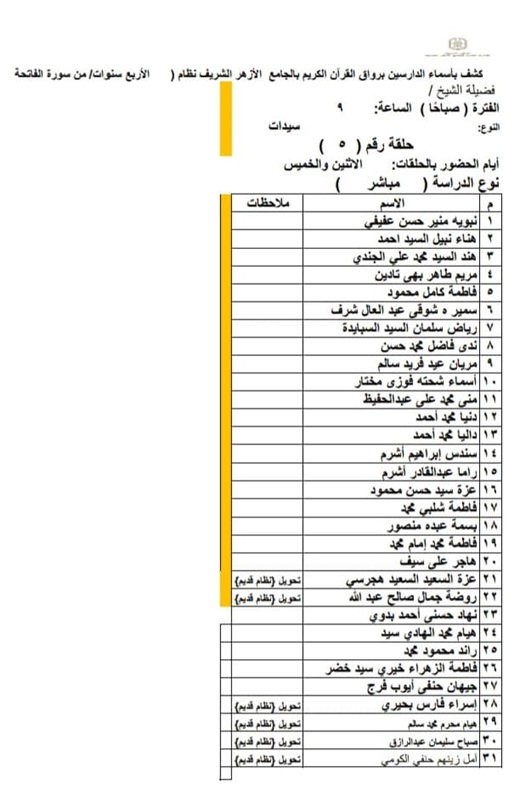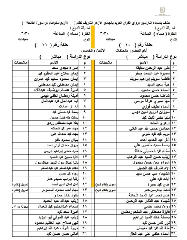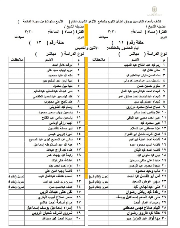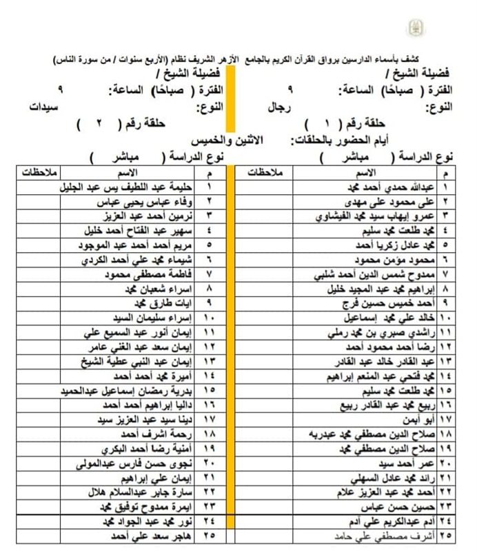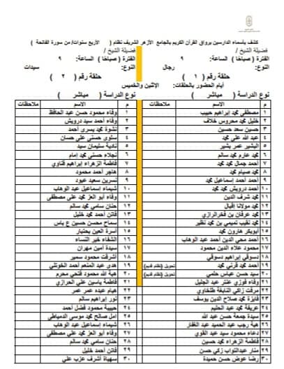 ننشر أسماء المتقدمين لبرنامج تحفيظ القرآن بالجامع الأزهر