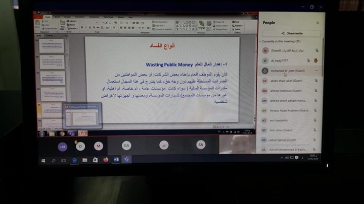 وصرح الدكتور مصطفى عبدالخالق رئيس الجامعة، أن البرنامج التدريبي يقام بصفة دورية "أون لاين"، لتعريف المتدربين بمفهوم الفساد وأنواعه وصوره المختلفة، وأيضا أسبابه وتأثيره على التنمية وحقوق الإنسان والمجتمع، لافتاً أن البرنامج التدريبي يتم عن طريق استخدام برنامج ميكروسوفت تيمز.