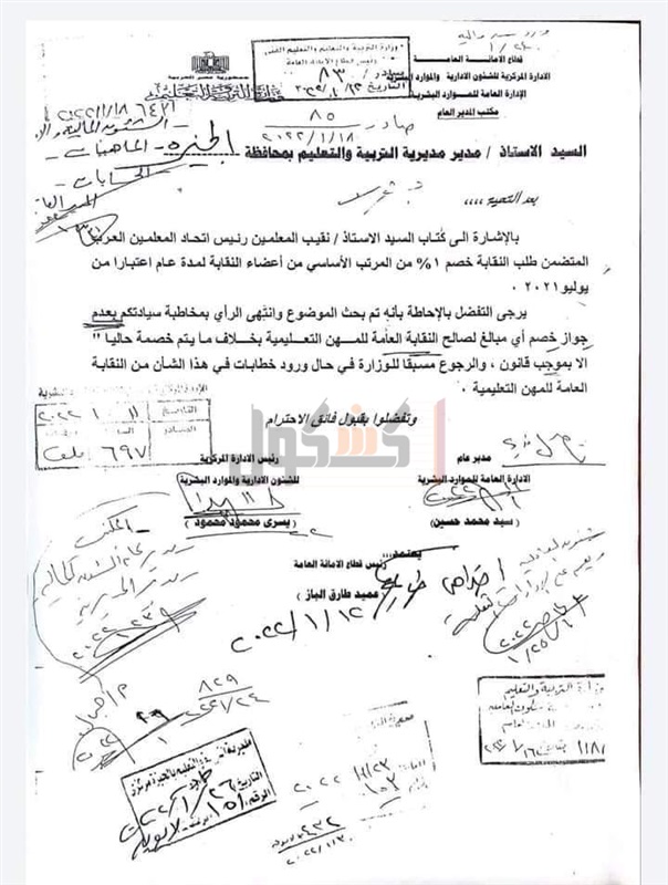 لصالح النقابة العامة للمهن التعليمية بخلاف ما يتم خصمة حاليا، الا بموجب قانون، والرجوع