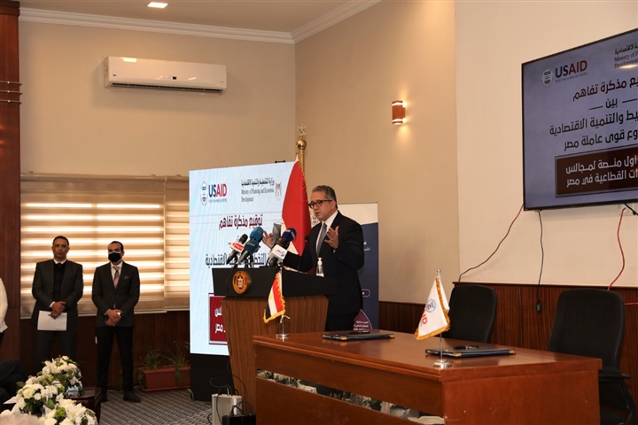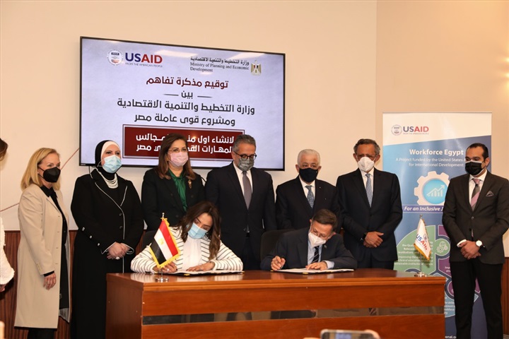 شهد الدكتور طارق شوقى، وزير التربية والتعليم والتعليم الفنى، والدكتورة هالة السعيد، وزيرة التخطيط والتنمية الاقتصادية، والدكتور خالد العناني، وزير السياحة والآثار، ونيفين جامع، وزيرة التجارة والصناعة، مراسم توقيع مذكرة تفاهم؛ لدعم وتنفيذ أنشطة مشروع "قوى عاملة مصر"، بين وزارة التخطيط والتنمية الاقتصادية، ومشروع قوى عاملة مصر، والممول من الوكالة الأمريكية للتنمية الدولية (USAID)؛ لإنشاء أول منصة لمجالس المهارات القطاعية فى مصر.