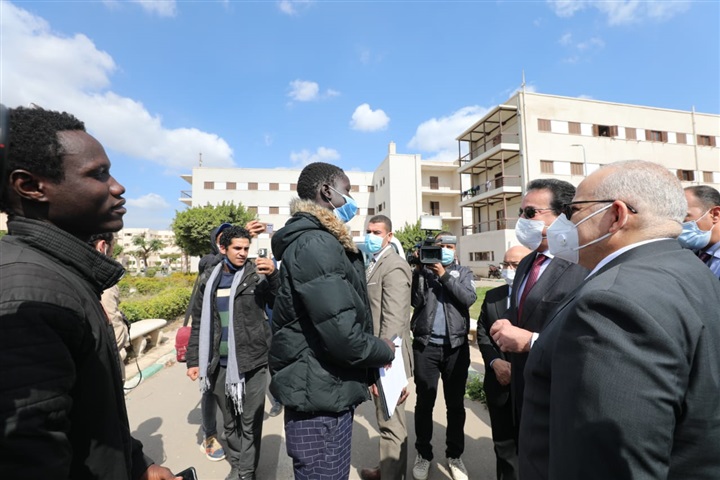 الحديث مع عدد من الطلاب المقيمين بالمدينة الجامعية، واطمأن على أوضاعهم وسلامتهم،