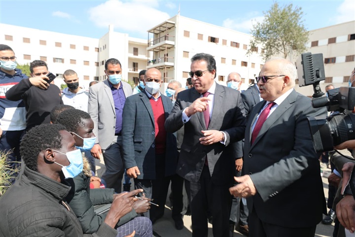 المبنى، كما تفقد المدينة الجامعية للطلاب بعد تجديدها، للاطمئنان على جاهزيتها لاستقبال