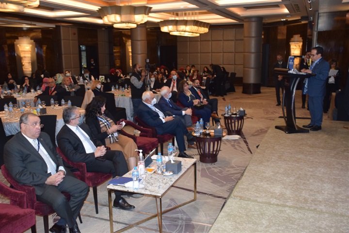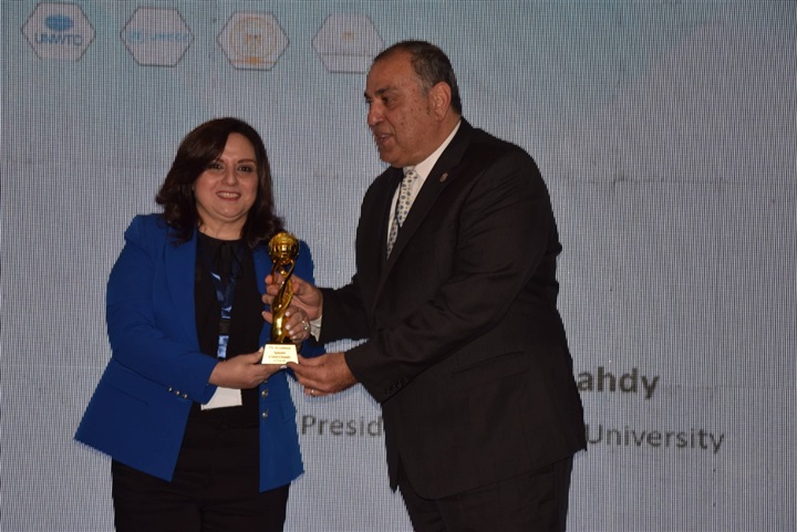 حفل افتتاح المؤتمر أهدت الدكتورة سهى عبدالوهاب الدكتور ممدوح مهدي رئيس الجامعة درع