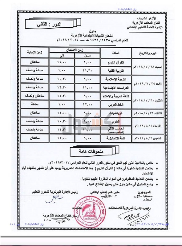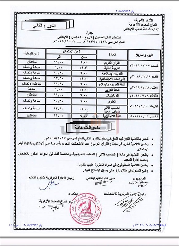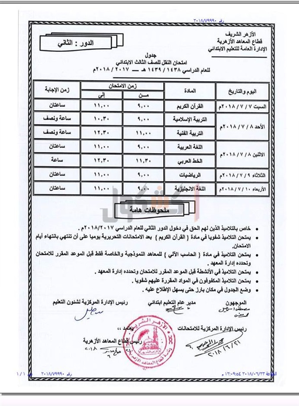 بالصور.. ننشر جدول امتحان المرحلة الابتدائية الأزهرية بجنوب سيناء