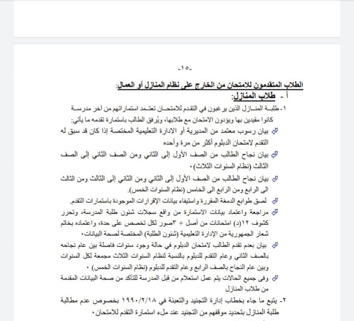 الطلاب المتقدمون للامتحان من الخارج على نظام المنازل اتباع الآتي: